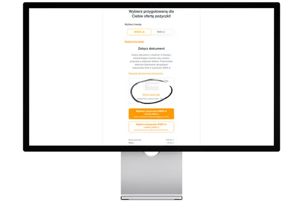 3. Po dodaniu dokumentu potwierdzającego Twój dochód wybierz interesującą Cię opcję pożyczki i przejdź do dalszej części procesu.
